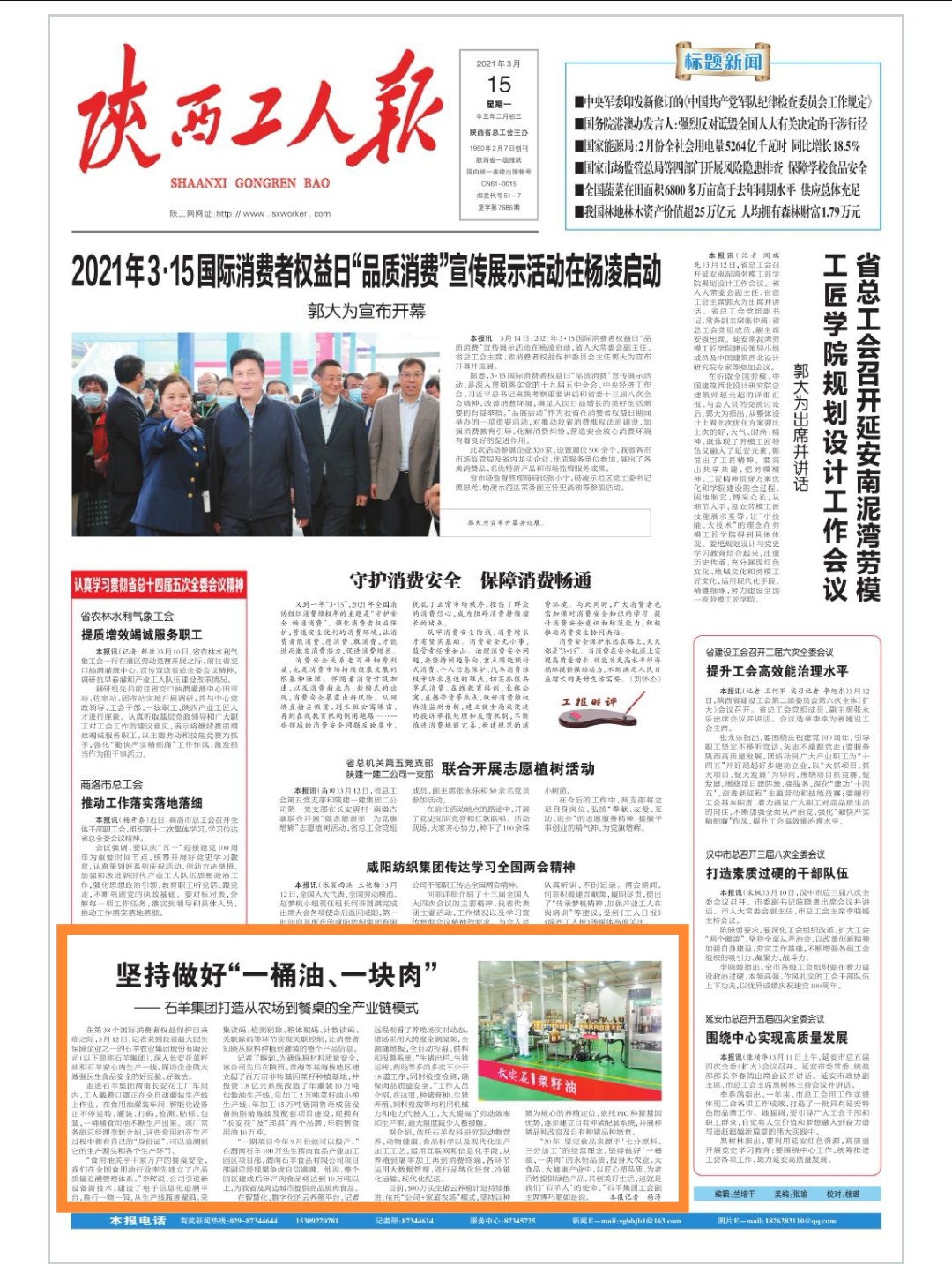 第39個(gè)國際消費(fèi)者權(quán)益保護(hù)日前夕,陜西日報(bào)、西部網(wǎng)、陜西...